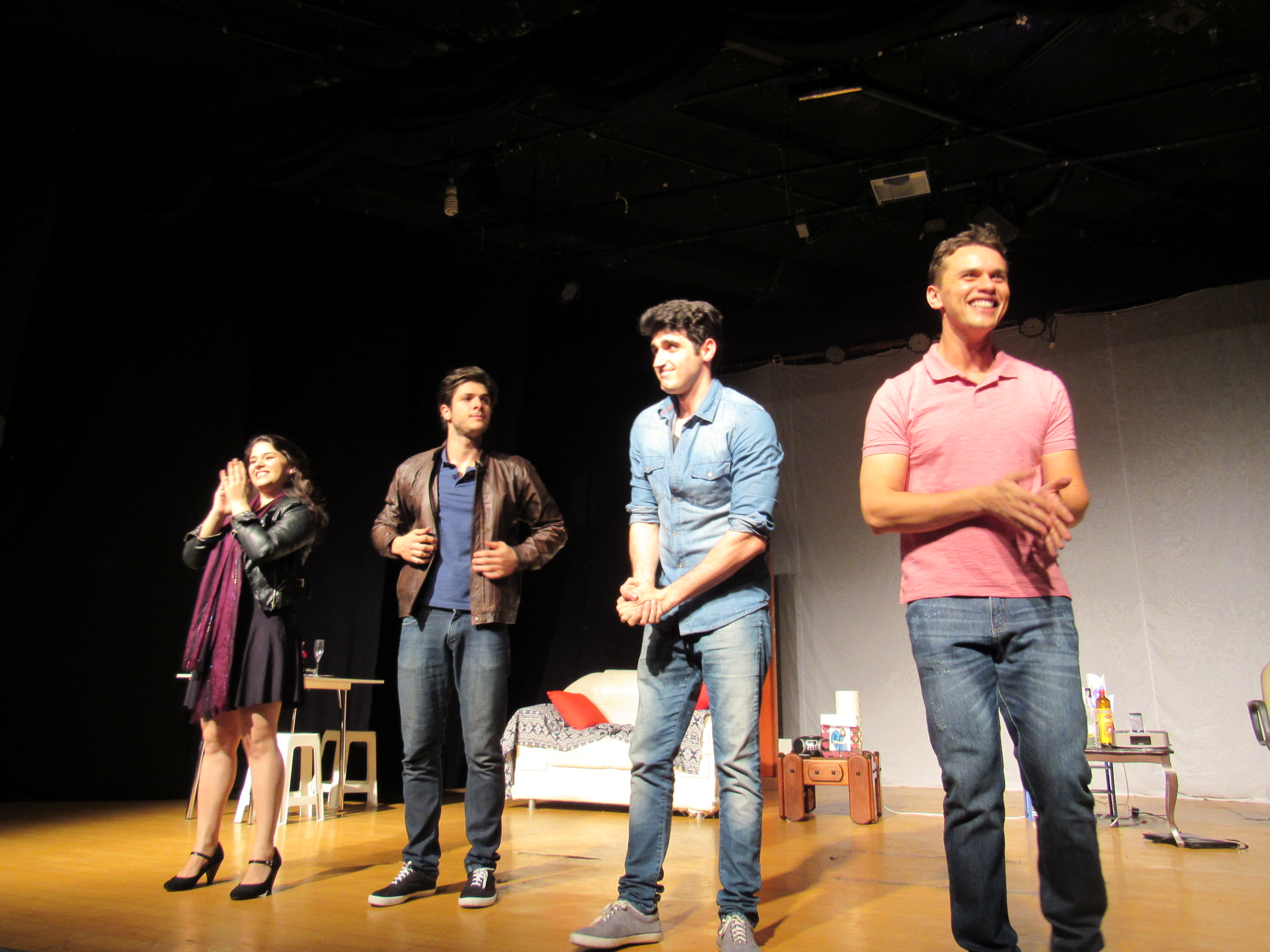 O elenco é formado por Filipe Bertini (Pedro), Ivo Ueter (Miguel), Isabella Custódio (Luiza) e Tiago Luchi (Jhon),  quarteto que arranca muitas gargalhadas da plateia, conduzindo com ritmo e dinamismo todas as situações dos personagens.
