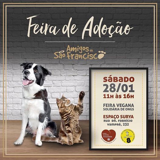 E para quem deseja adotar um amigo, a ONG Amigos de São Francisco trará gatos e cachorros de todas as idades. Para a adoção é necessária a apresentação de documento com foto, comprovante de residência e foto do local onde o animal irá ficar, além de passar por  entrevista e deixar uma contribuição para as continuidades dos trabalhos de regate e tratamentos realizados pela ONG.
