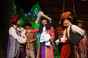 Personagens e atores: Peter Pan (Matheus Ueta), Wendy (Gaby Sêga), Sininho (Karoline Sanches), Capitão Gancho (Álvaro de Padua), Chefe Índio (João Estevan), Tigrinha (Tirzi Oliveira), Pirata sem dente (Italo Rodrigues), Pirata Barriga (Ana Saguia), Mulher do Capitão (Vanessa Ruiz), Piratinha